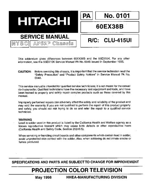 Read hitachi 60ex38b service manual Library Binding Google eBookstore